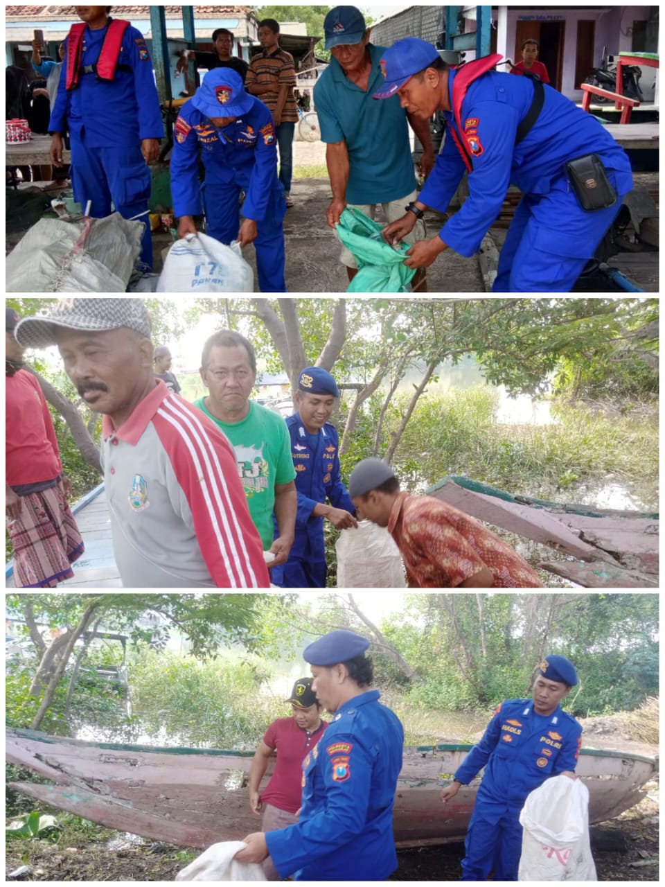 Satpolairud Polresta Sidoarjo Bersama Nelayan Bersihkan Kawasan Pesisir Tlocor