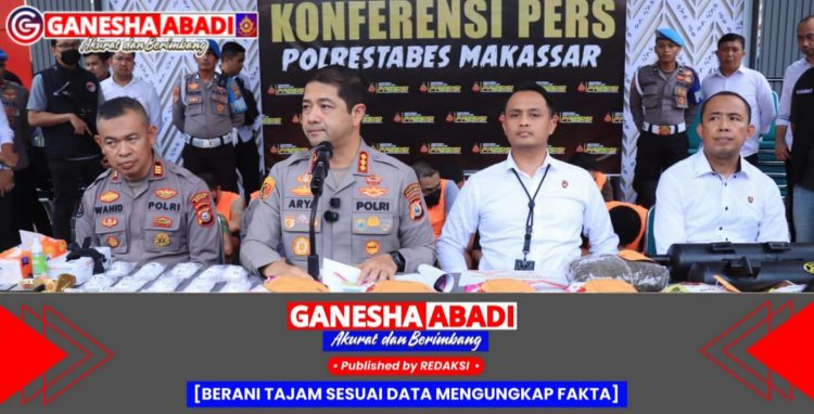 Pengungkapan ini disampaikan dalam konferensi pers yang digelar di Lobi Mapolrestabes Makassar, Senin (14/4/2025). Kegiatan ini dipimpin langsung oleh Kapolrestabes Makassar Kombes Pol Arya Perdana SH, SIK, MSi, didampingi Kasat Resnarkoba AKBP Lulik F SIK MH dan Kasi Humas AKP Wahidudin, serta dihadiri rekan-rekan media.