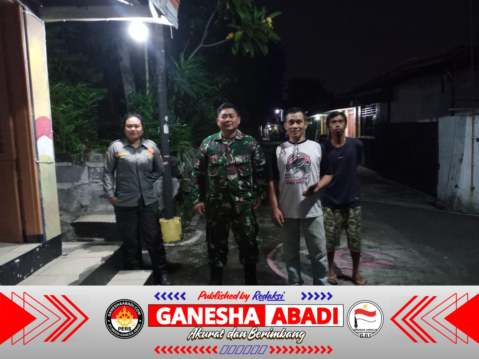 Piket Koramil 03/Serengan Kodim 0735/Surakarta Sertu Rochani melaksanakan Patroli Malam bersama Satlinmas