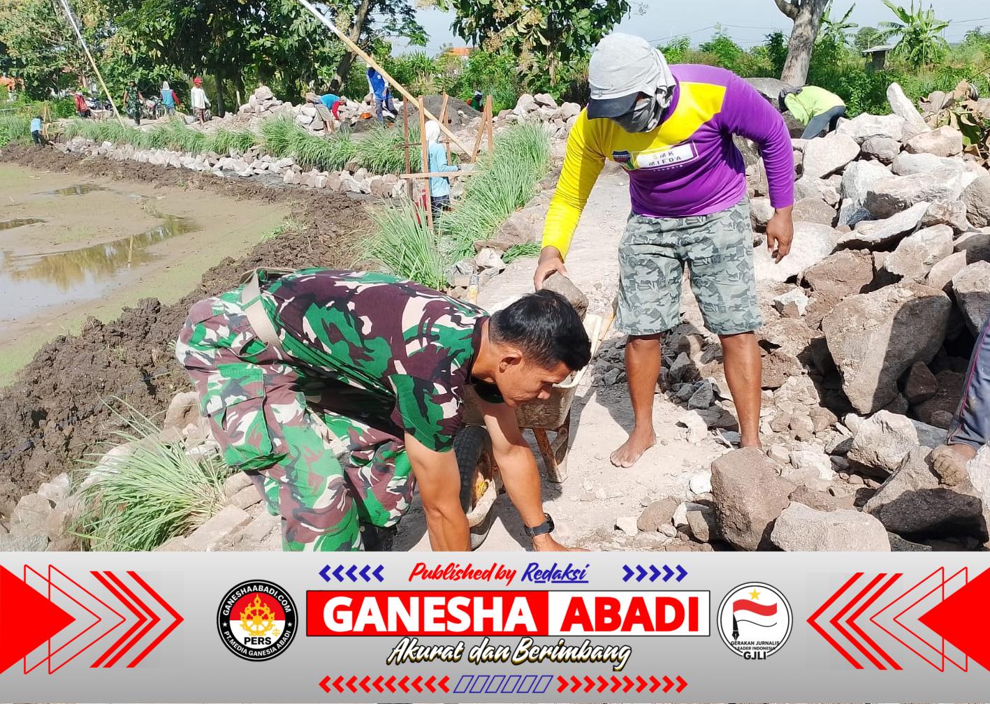Sinergi Penuh Kebersamaan, Babinsa dan Warga Bangun Tanggul Penahan Tana