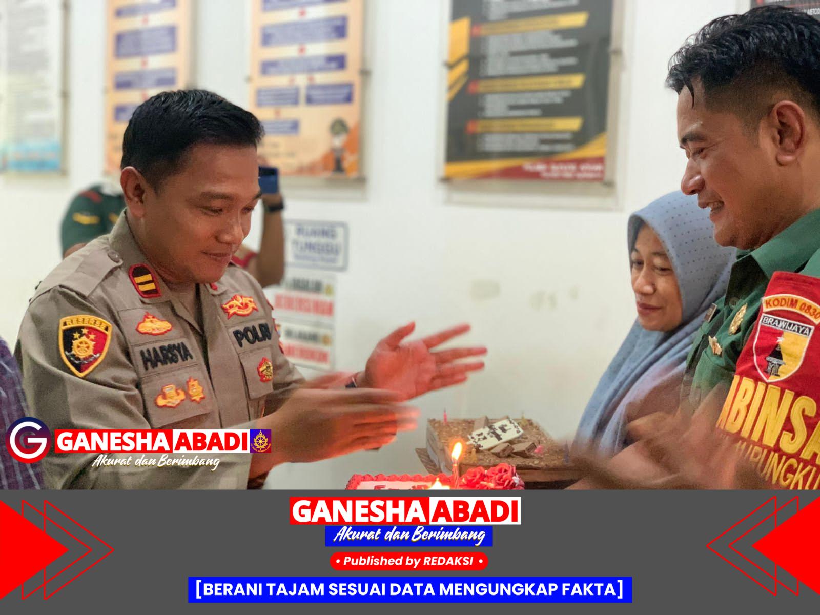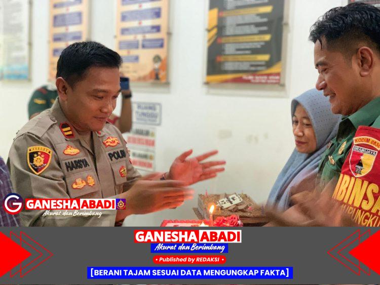 Sinergitas Tiga Pilar, Koramil Rungkut dan Kecamatan Gunung Anyar Beri Kejutan untuk Polsek Gunung Anyar di HUT Bhayangkara ke-79