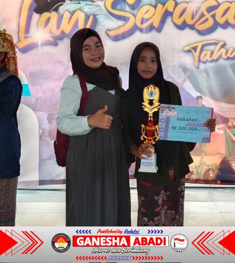 Musi Rawas – Prestasi membanggakan diraih oleh siswi SMPN HTI Bumi Makmur dalam Pekan Budaya “La Serasan Sekantenan Tahun 2025” yang digelar Dinas Pariwisata dan Kebudayaan Kabupaten Musi Rawas, Selasa–Rabu (14–15/10/2025) di Taman Beregam, Kecamatan Muara Beliti.