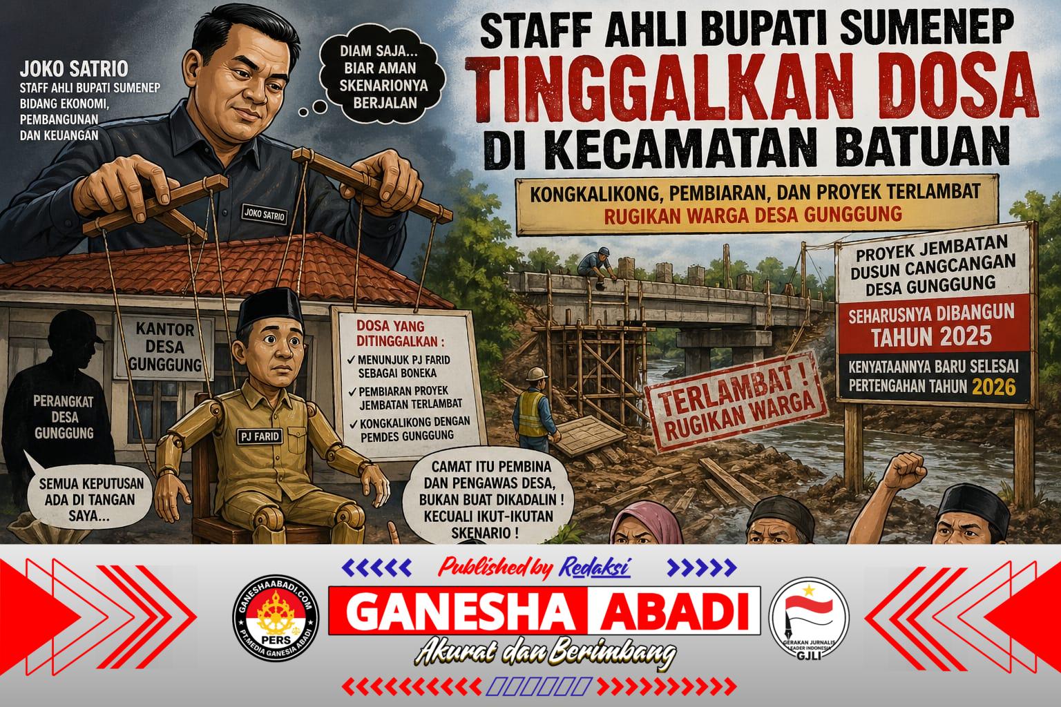 Sumenep – Gelombang sorotan publik terhadap tata kelola pemerintahan desa kembali mencuat. Kali ini, perhatian tertuju pada sosok mantan Pelaksana Tugas (PLT) Camat Batuan, Joko Satrio, yang kini menjabat sebagai Staf Ahli Bupati Sumenep bidang Ekonomi, Pembangunan, dan Keuangan.