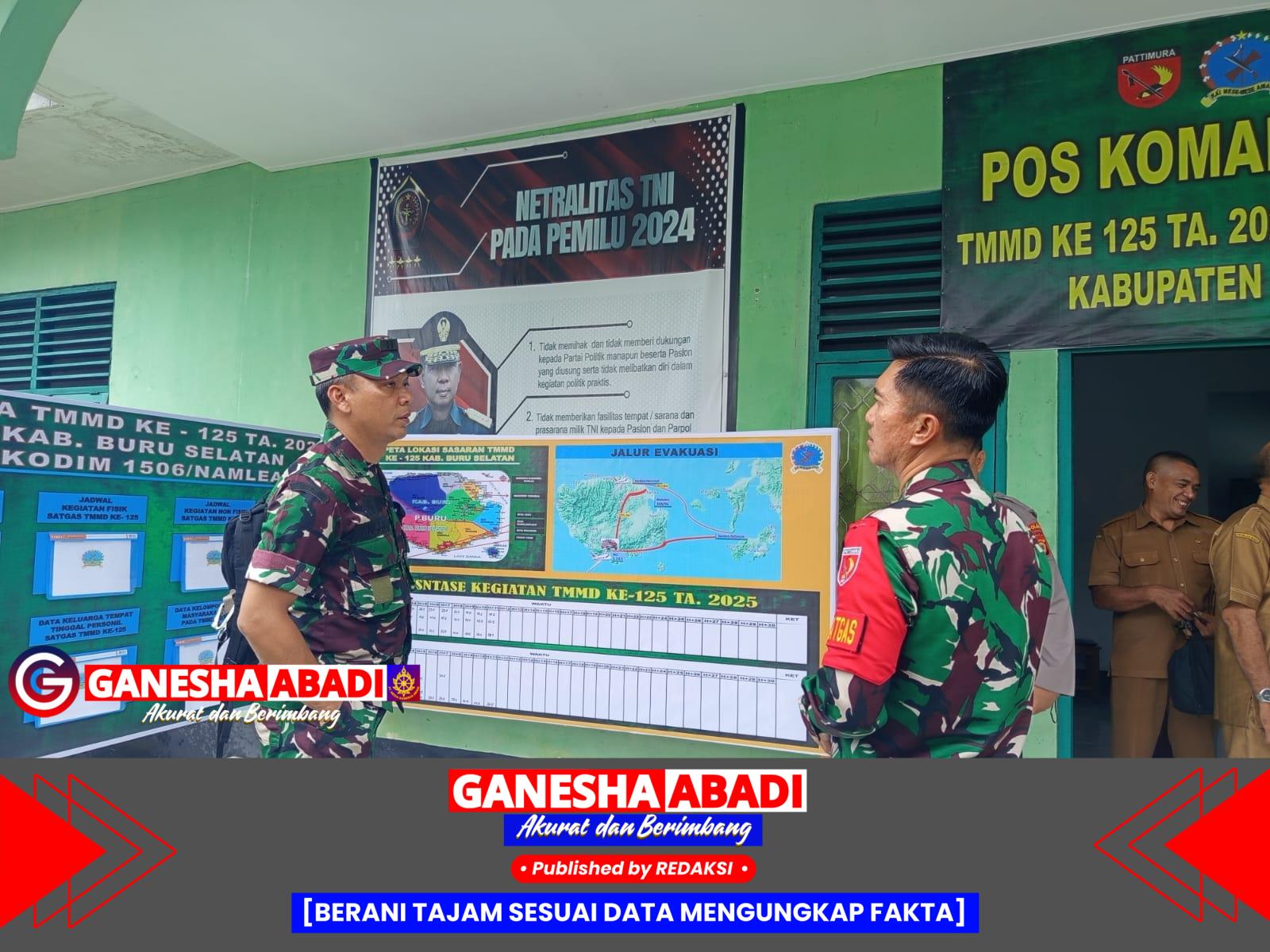 Buru Selatan – Tim Pengawas dan Evaluasi (Wasev) TMMD ke-125 Kodim 1506/Namlea meninjau langsung pelaksanaan program TMMD di Kabupaten Buru Selatan, Senin (4/8/2025). Kegiatan ini bertujuan memastikan seluruh sasaran fisik dan non-fisik berjalan sesuai rencana.