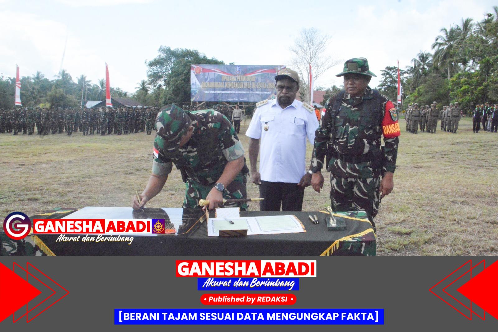 Jayapura — Program TNI Manunggal Membangun Desa (TMMD) ke-124 Tahun 2025 Kodim 1701/Jayapura resmi ditutup oleh Danrem 172/PWY Brigjen TNI Tagor Rio Pasaribu, S.E., dalam upacara di Lapangan Bola Kampung Ibup, Distrik Kemtuk Gresi, Kabupaten Jayapura, Rabu (4/6/2025).