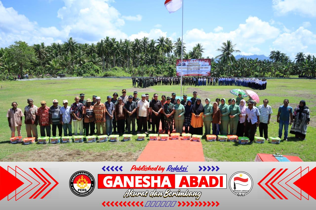 Usai upacara, kegiatan dilanjutkan dengan pembagian sembako dan layanan pengobatan gratis bagi warga, serta peninjauan pembangunan sumur bor oleh Kasdam XV/Pattimura bersama rombongan.
