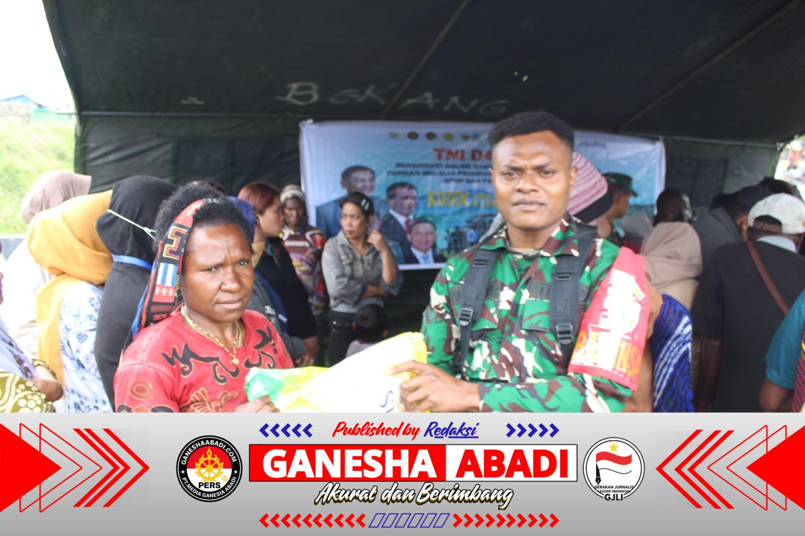 Puncak Jaya – Komando Distrik Militer (Kodim) 1714/Puncak Jaya bekerja sama dengan pihak Bulog menggelar sinergi nyata dalam mendukung program swasembada pangan nasional melalui kegiatan distribusi beras dalam rangka program pangan murah. Kegiatan yang berlokasi di perempatan jalan Distrik Purlame, sekitar kawasan Markas Kodim 1714/Puncak Jaya, Kabupaten Puncak Jaya, Papua, Rabu (1/4/2026), diimplementasikan sebagai upaya strategis untuk menjamin ketersediaan pangan yang terjangkau serta memperkuat kemandirian pangan di wilayah yang memiliki tantangan geografis dan kondisi logistik yang khas.