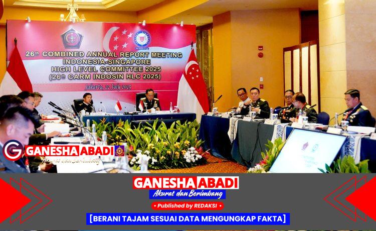 Jakarta – Tentara Nasional Indonesia (TNI) bersama Singapore Armed Forces (SAF) menggelar pertemuan tingkat tinggi High-Level Committee Combined Annual Report Meeting Indonesia–Singapore (HLC CARM-INDOSIN) ke-26 di Ballroom Ritz-Carlton Hotel, Jakarta, Selasa (22/7/2025). Pertemuan ini menjadi bukti komitmen kedua negara dalam memperkuat kerja sama strategis demi menjaga stabilitas kawasan dan mendukung perdamaian global.