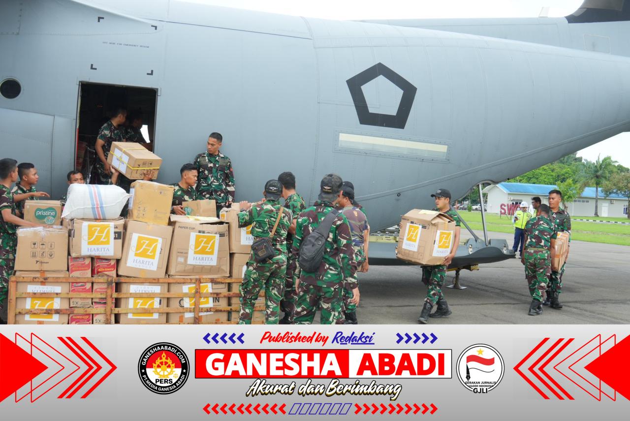 (Puspen TNI). Untuk menjangkau wilayah yang terputus akibat banjir dan tanah longsor di Tapanuli Tengah serta sejumlah titik di Medan, TNI mengerahkan pesawat dari Lanud Halim Perdanakusuma, Jakarta Timur, untuk melaksanakan pengiriman bantuan dengan Metode Airdrop, Senin (1/12/2025).