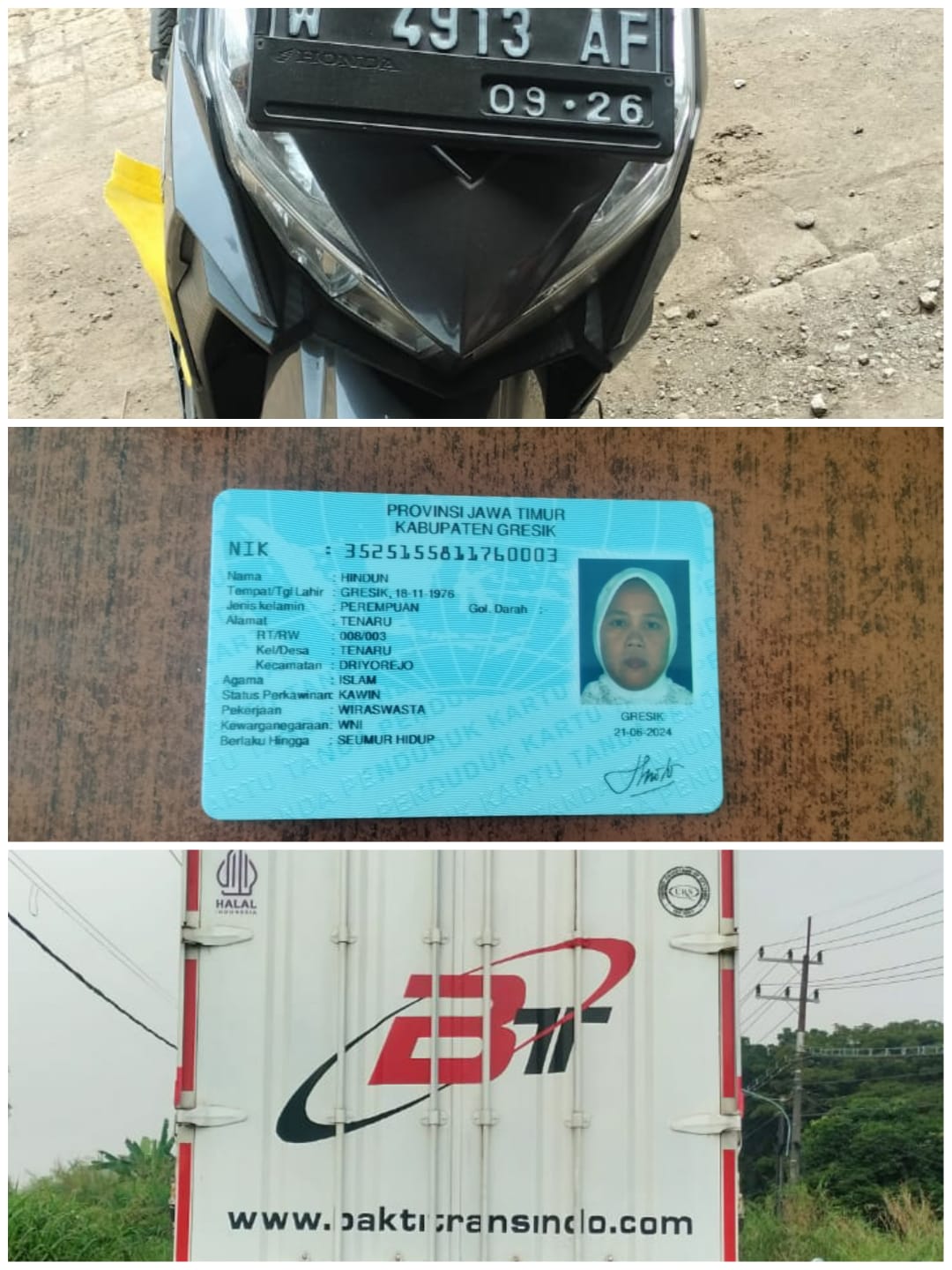 Kapolsek Driyorejo, Kompol Musihrom, menjelaskan bahwa kecelakaan melibatkan pengendara Honda Vario W 4913 AF atas nama Hindun (48), warga Tenaru Driyorejo, yang melaju dari arah utara ke selatan. Di saat bersamaan, truk tractor head G 9781 OF yang dikemudikan Salasafudin (24), warga Banyumas, Jawa Tengah, bermaksud mendahului dari sisi kanan.