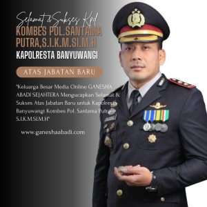 BANYUWANGI – Pimpinan Media Nasional Ganesha Abadi Sejahtera, Nur Kholis, mengucapkan selamat kepada Kombes Pol Santama Putra, S.I.K., M.Si., M.H., atas pelantikannya dalam jabatan baru di Bumi Blambangan, Banyuwangi. Dalam pernyataan tersebut, Nur Kholis menekankan harapannya agar Kombes Pol Santama memberikan kontribusi positif dalam meningkatkan keamanan dan kesejahteraan masyarakat Banyuwangi, Selasa (08/10/2024).