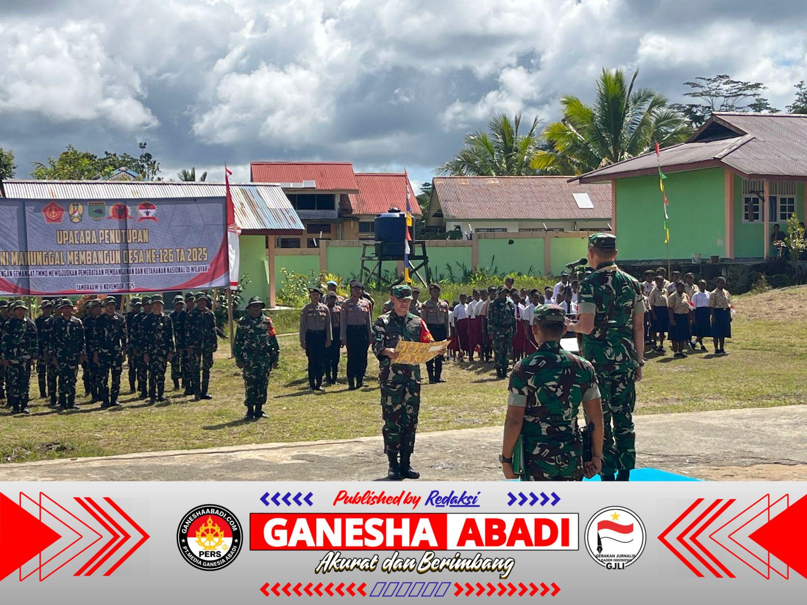 Tambrauw – Upacara penutupan TNI Manunggal Membangun Desa (TMMD) ke-126 Kodim 1810/Tambrauw berlangsung khidmat dan penuh makna di Kampung Babak, Distrik Bamusbama, Kabupaten Tambrauw, pada Kamis (6/11/2025).