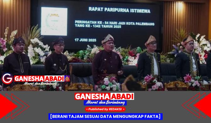 Palembang – Wali Kota Lubuk Linggau, H. Rachmat Hidayat, turut menghadiri Rapat Paripurna Istimewa DPRD Kota Palembang dalam rangka Hari Ulang Tahun (HUT) ke-1342 Kota Palembang yang digelar di Gedung DPRD Kota Palembang, Selasa (17/6/2025). Rapat dipimpin langsung oleh Ketua DPRD Kota Palembang, Ali Subri.