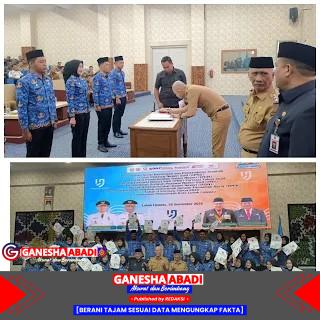 Sebanyak 35 orang menerima SK dalam kesempatan ini, terdiri dari 1 orang CPNS yang diangkat menjadi PNS, 4 orang lulusan IPDN, serta 29 orang PPPK Tahap II. Dari jumlah PPPK tersebut, terdiri dari 1 tenaga teknis, 4 tenaga guru, dan 24 tenaga kesehatan.