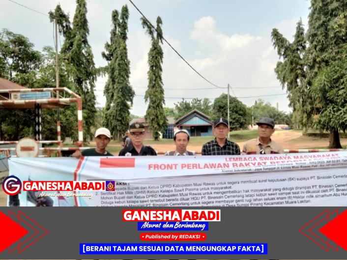 Musi Rawas – Ratusan warga dari Desa Sungai Pinang, Muara Rengas, Anyar, dan Semangus Baru, Kecamatan Muara Lakitan, Kabupaten Musi Rawas, Sumatera Selatan, mendatangi kantor PT Binasain Cemerlang (BSC) pada Selasa (22/7/2025). Aksi yang dimulai sejak pukul 08.30 WIB hingga 12.00 WIB ini digelar oleh masyarakat yang tergabung dalam Lembaga Swadaya Masyarakat Front Perlawanan Rakyat Reformasi Republik Indonesia.